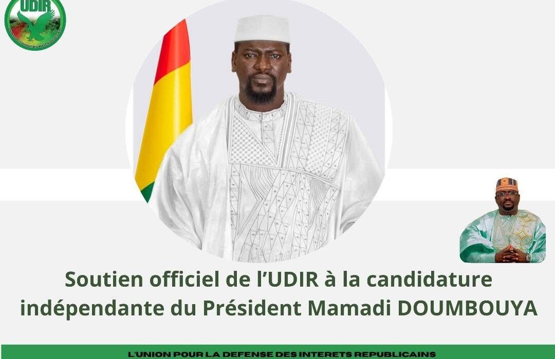 Le parti UDIR annonce qu’il apportera son soutien au candidat Mamadi Doumbouya à l’occasion de l’élection présidentielle du 28 décembre 2025, avec qui nous partageons des idéaux, une vision commune et un engagement profond pour la paix, la stabilité et le développement durable de la Guinée.